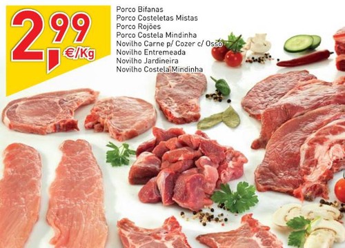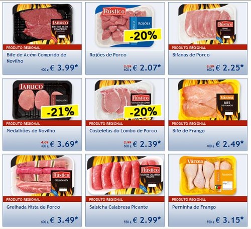 No entanto quem não pode comprar no talho e compra no supermercado aqui fica uma comparação dos preços atualmente em vigor.