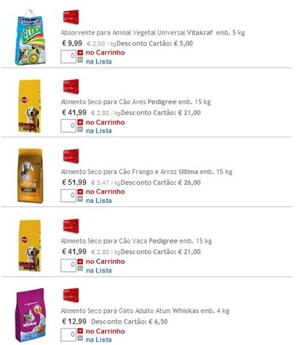 Também para quem tem talão de 25% em alimentação e acessórios para animais de estimação, este é o meu caso, pode fazer várias acumulações com 75% de desconto: