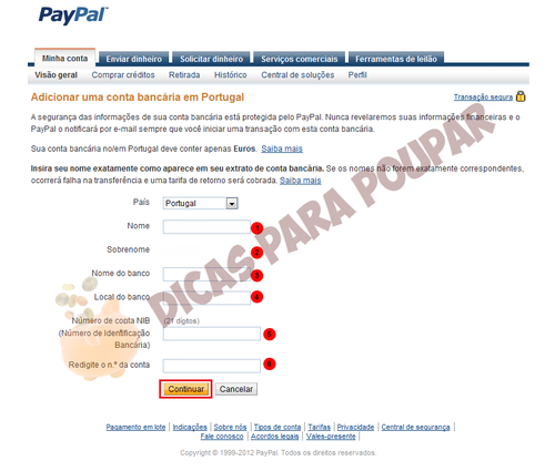 Mas a dificuldade de alguns leitores, prendeu-se também no facto de adicionar uma conta bancária para depois pedir o dinheiro que temos no paypal para a conta bancária.