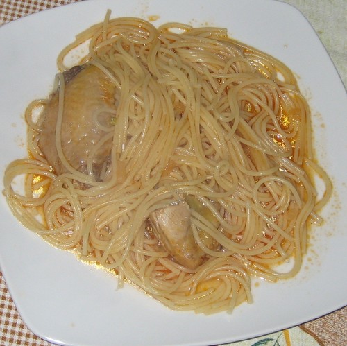 Frango com esparguete